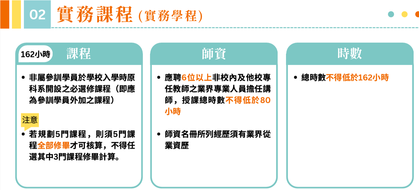 | (1)實務學程 | 引進業界專業師資及企業職場等資源 開設488小時的產學合作課程 |