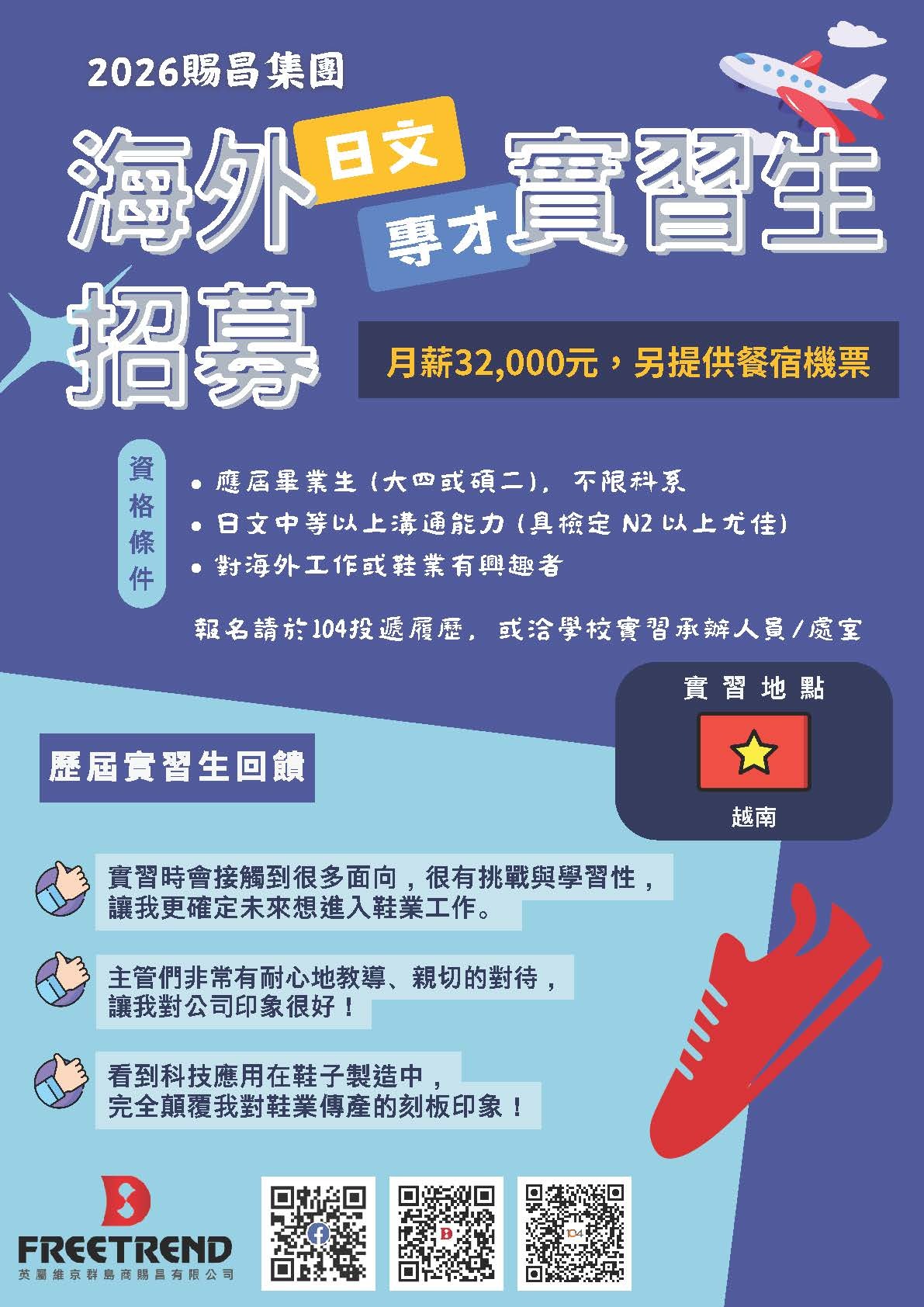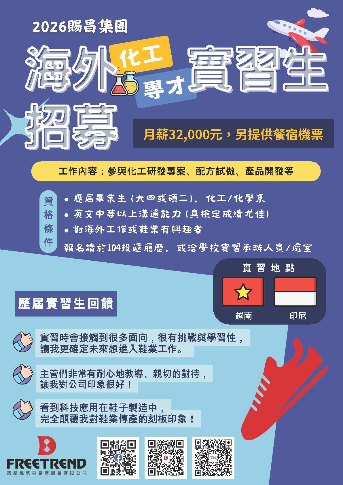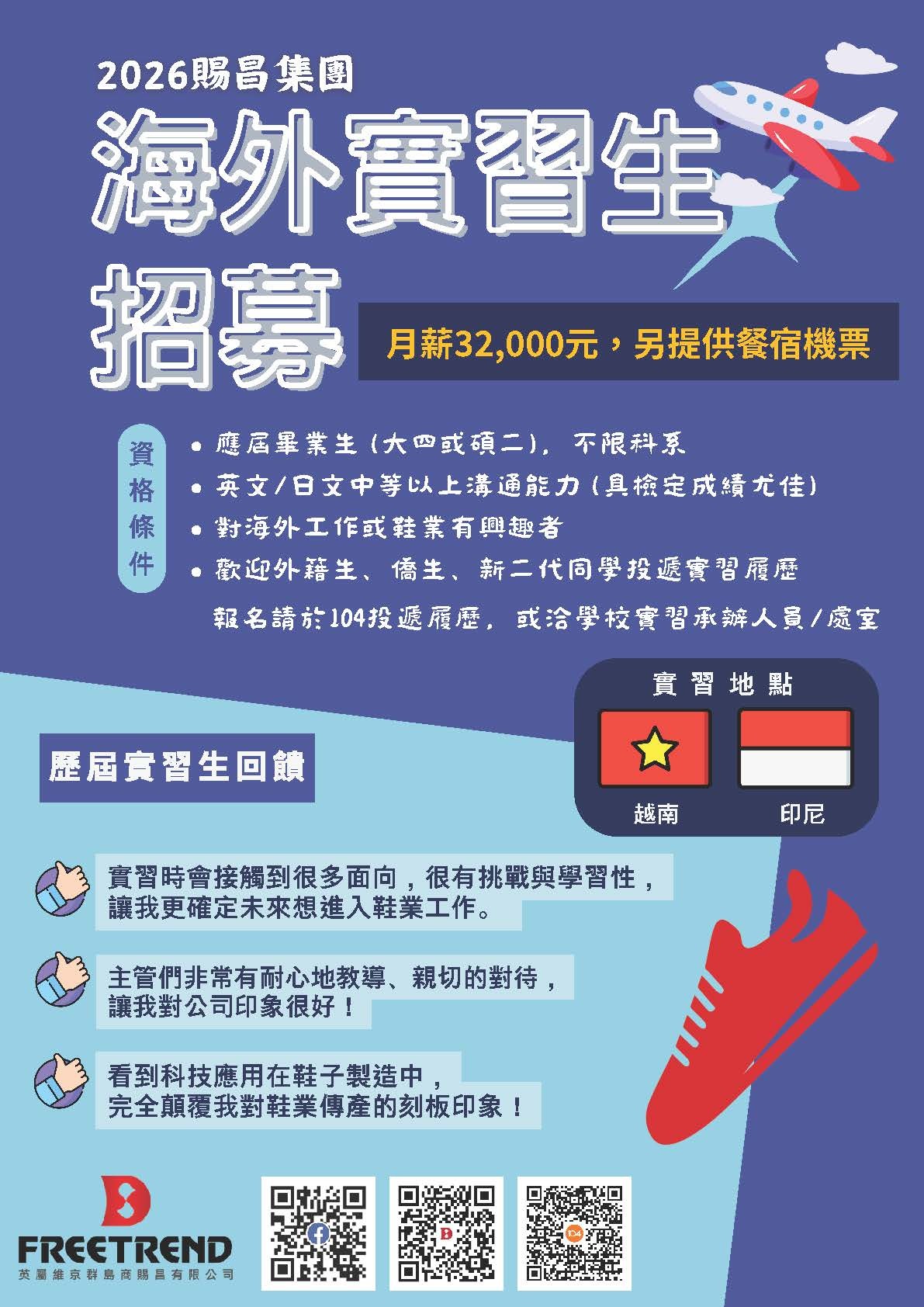實習地點:越南廠、印尼廠。